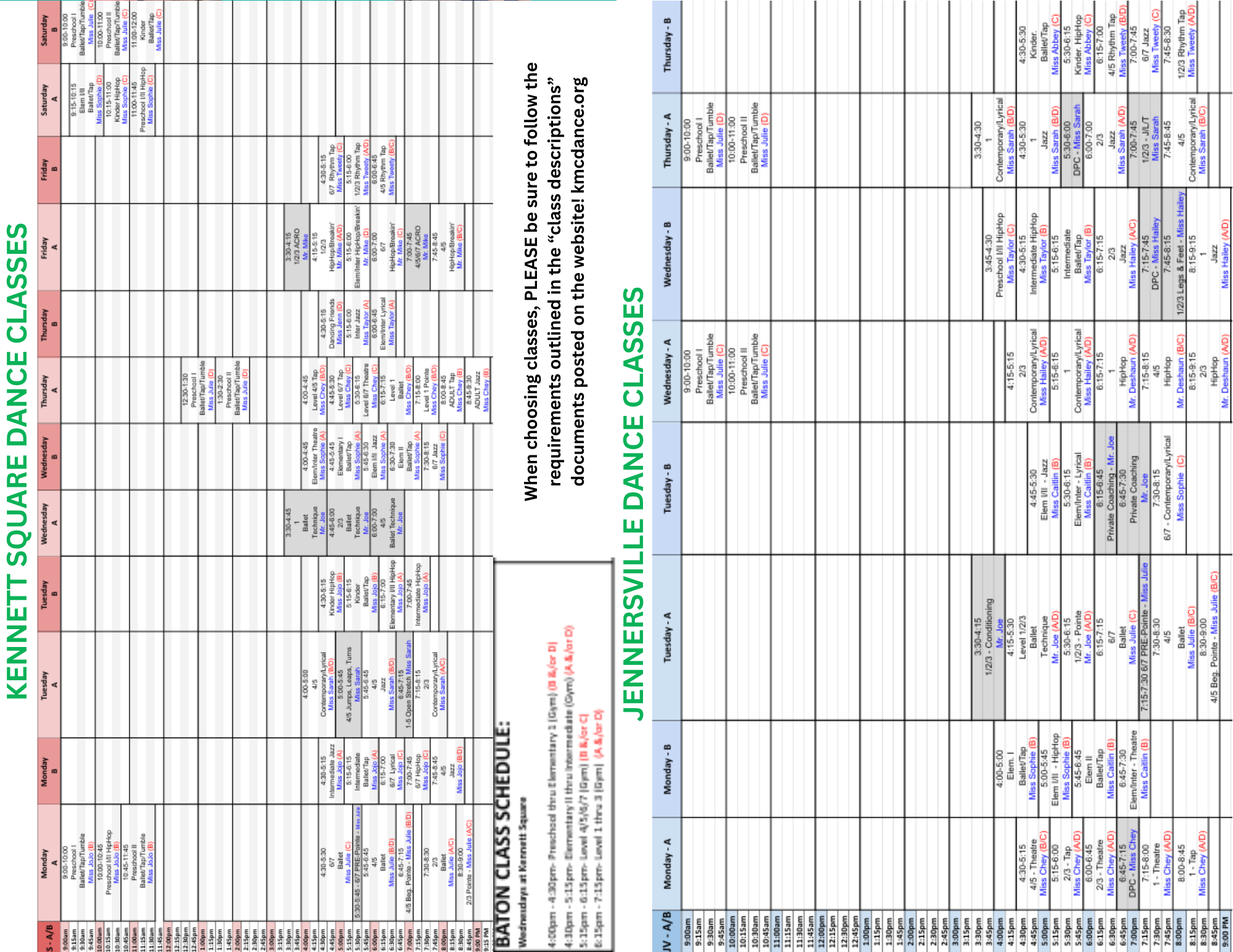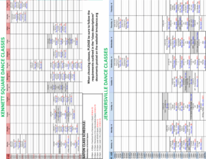 Kennett – 912 W. Cypress St. Kennett Square, PA 19348 – 610-444-4464 ***** Jennersville Dance Studio – 390 Vineyard Way #306, West Grove, PA 19390 – 610-869-4849